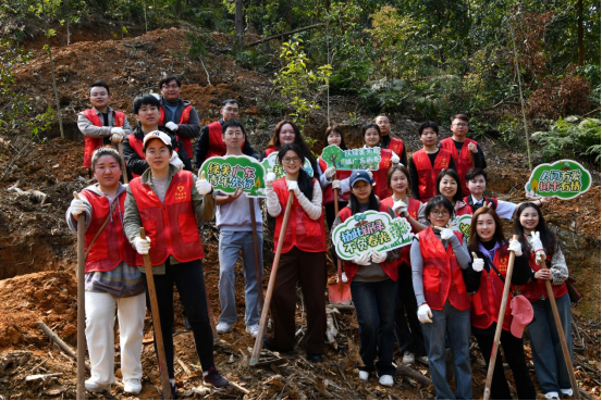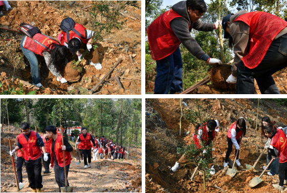 3月8日上午,一群身穿红色马甲的青年教师们手持铁锹、锄头默契协作,在韶关市森林公园植树点为韶关增添了又一抹新绿。