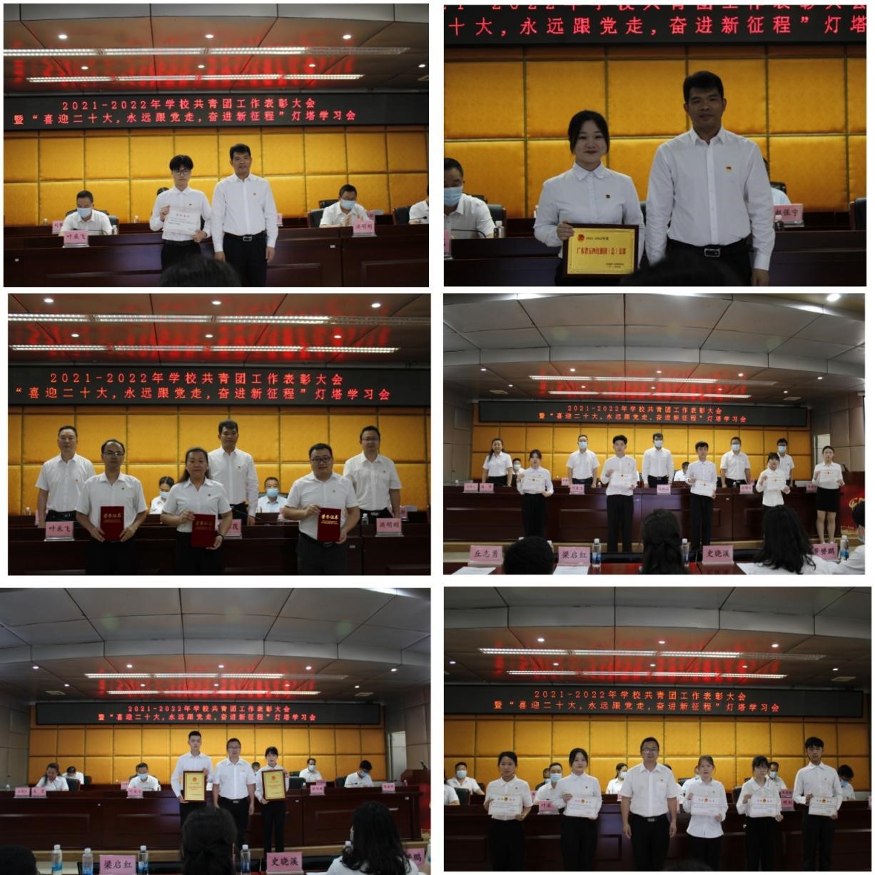 大会在激昂的国歌声中拉开帷幕。会上,高贺宣读了《关于表彰广东松山职业技术学院2021-2022年度共青团工作先进集体和个人的决定》。与会领导分别为获得校内表彰的先进集体和优秀个人代表颁奖,为获得上级团组织表彰的先进集体和优秀个人代授奖牌和荣誉证书。